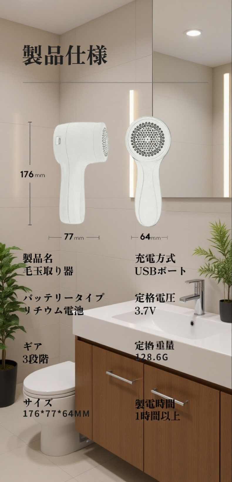 毛球修剪器充電式 家庭用毛玉取り器の全体画像
